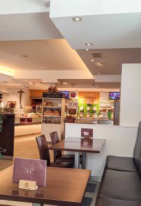 Das Angebot im Cafè reicht von herzhaften belegten Brötchen und Panini bis hin zu süßen Köstlichkeiten wie Nutella-Croissants und Marzipan-Schnitten. Besonders beliebt sind die Eisspezialitäten, die selbst in der Konditorei gefertigt werden. Das Café bietet eine perfekte Auszeit, sei es für einen schnellen Espresso an der Theke oder einen gemütlichen Cappuccino, zusätzlich können auch gleich einige Einkäufe, wie das frisch lokal gebackene Brot erledigt werden. Kommen Sie vorbei und probieren Sie die ganze Fülle aus Bäckerei, Konditorei und Eismanufaktur. Direkt vis-a-vis findet sich auch schon unser nächster Kunde.